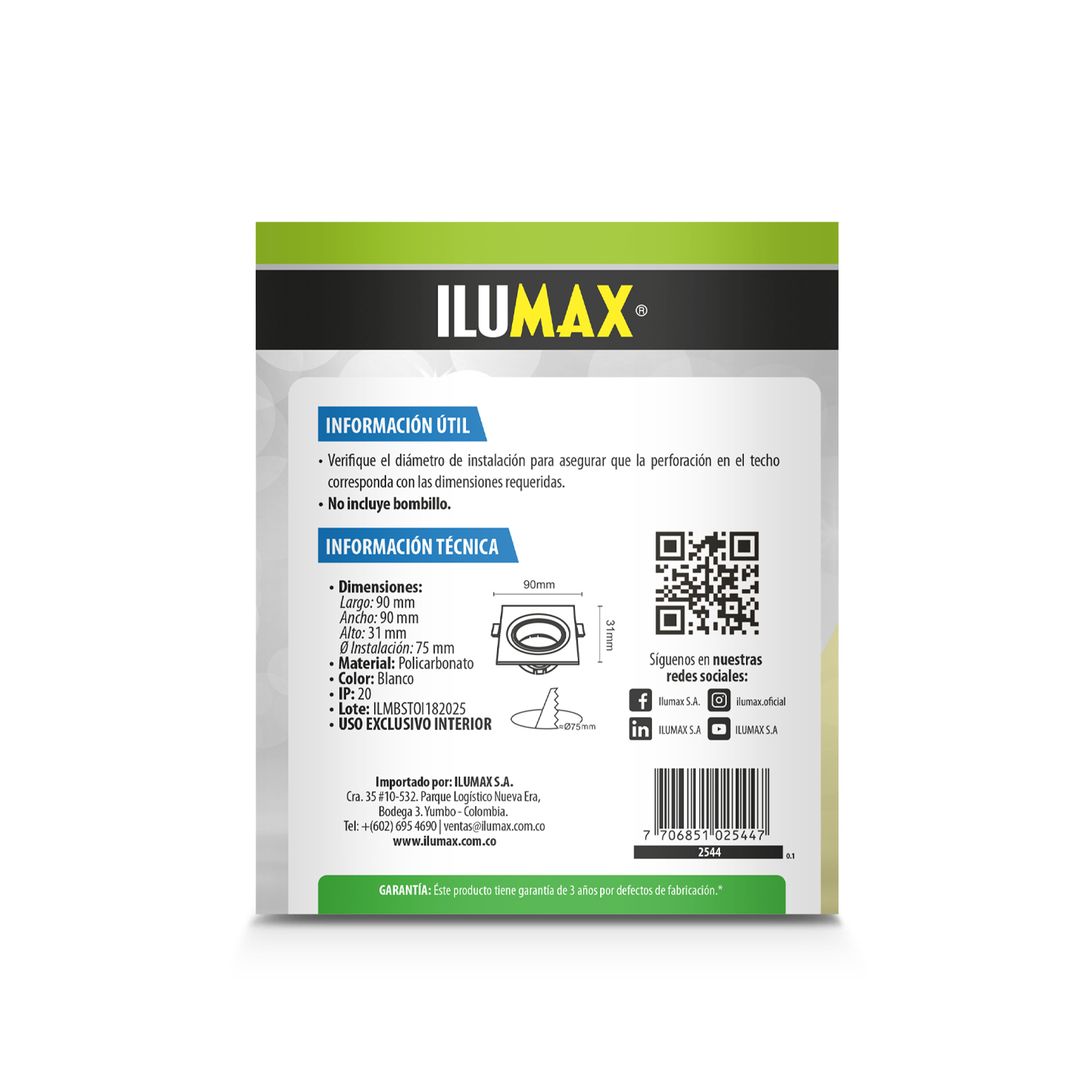 BALA DE EMPOTRAR ESCUALIZABLE CUADRADA RECESADA BLANCA, para todo tipo de estilos tanto en hogares, como en oficinas y comercios, perfecto para resaltar zonas y crear un espacio acogedor.