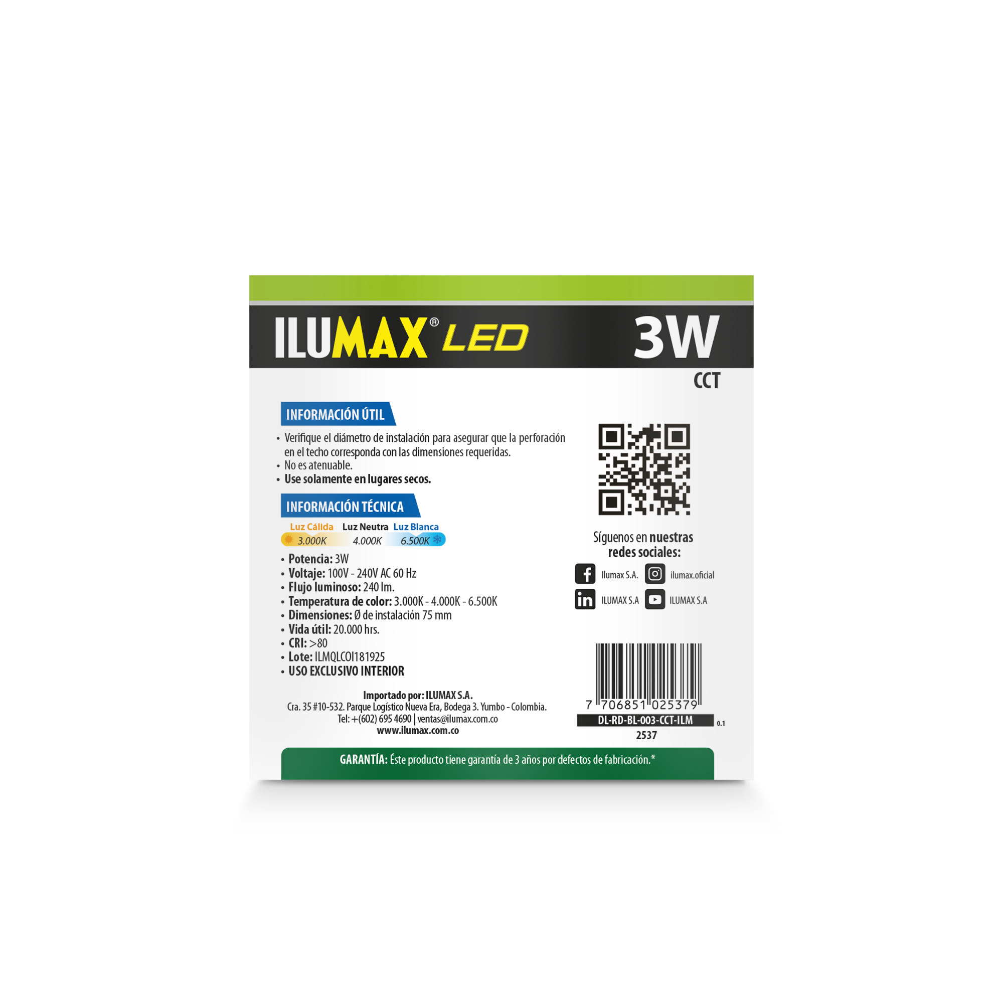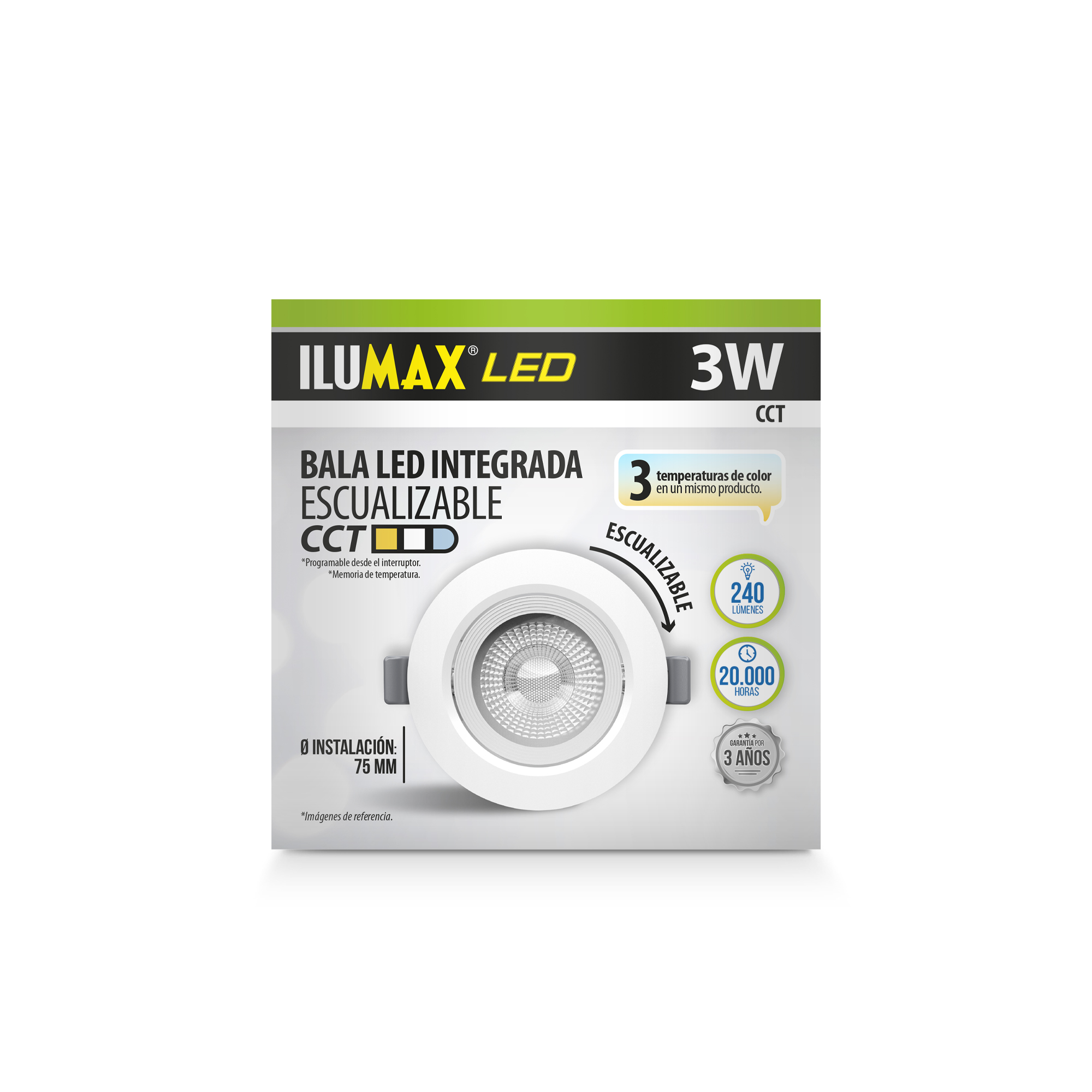 BALA INTEGRADA LED CCT 3W 240 lm, escualizable perfecto para todo tipo de estilos tanto en hogares, como en oficinas y comercios, perfecto para resaltar zonas y crear un espacio acogedor.